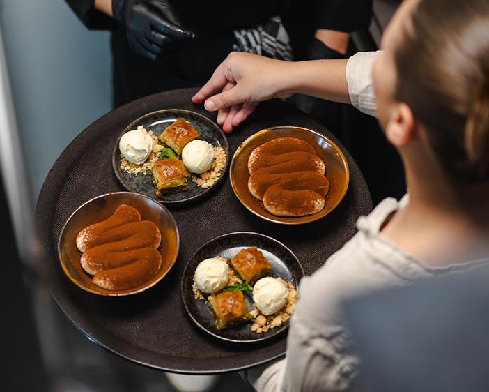We bieden een menu met gerechten om te delen (à la carte), of je kunt je laten verrassen door een “Table à partager” (seizoensgebonden), waarbij de chef je meeneemt op een reis naar het zuiden.