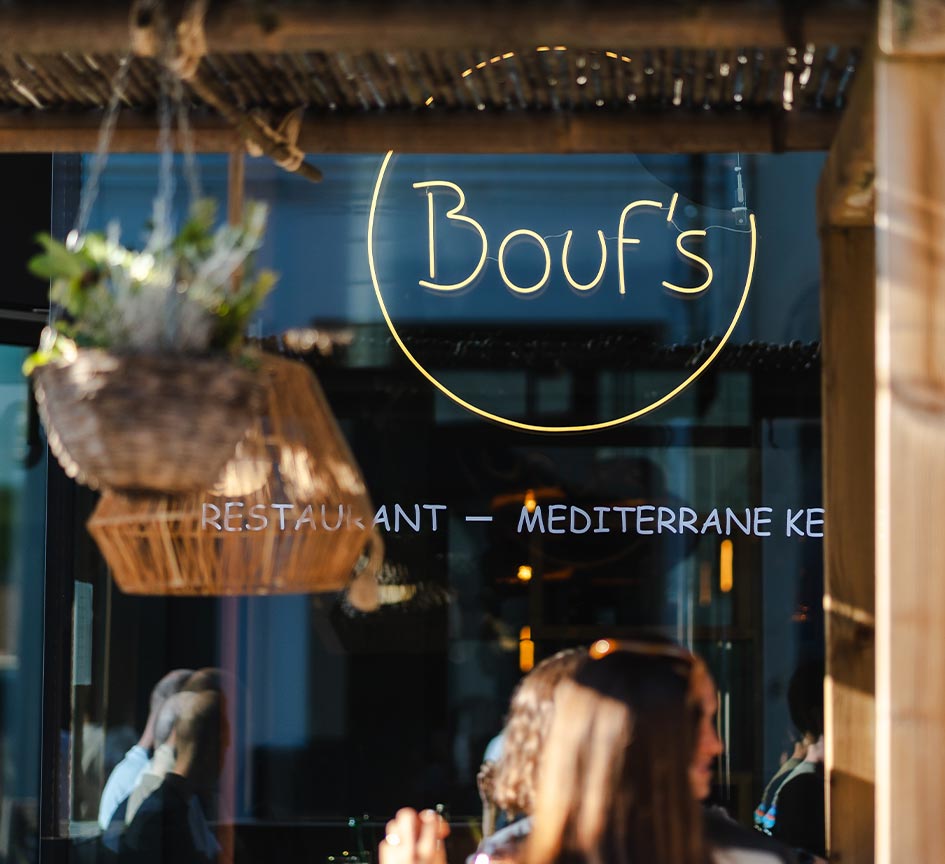 Bouf's is een restaurant geïnspireerd door de mediterrane keuken. Deze invloeden zijn terug te vinden in zowel de keuken als het interieur. De zuidelijke toets creëert een warme sfeer die ons concept weerspiegelt.